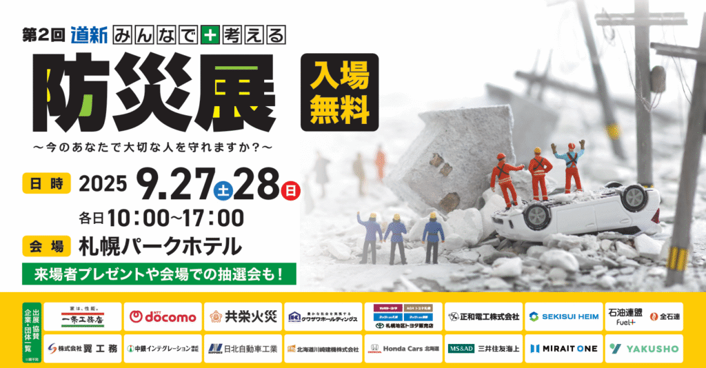 令和7年9月27日(土)~28日(日)、北海道新聞主催「みんなで考える防災展」に協賛企業として参加しました。